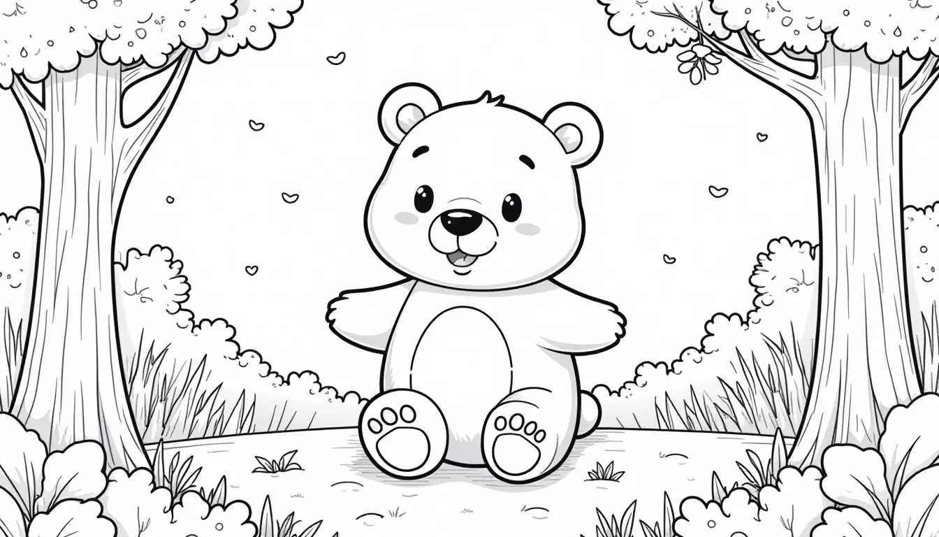 Cuddly Happy Bear Coloring Page in Cute Forest✨🎨