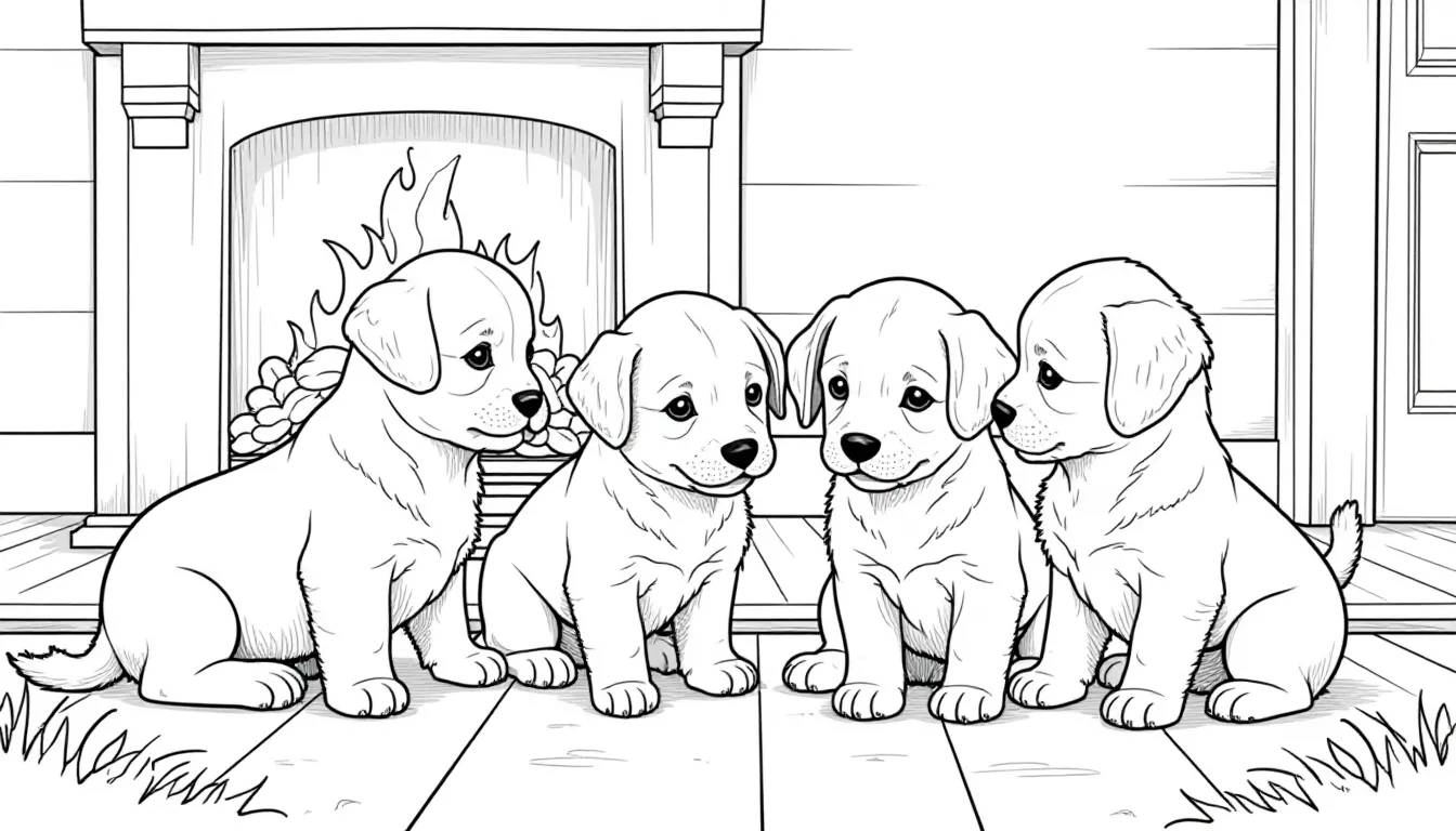 This Cute Puppies by the Fireplace Coloring Page coloring page was created using ColorBuk's AI-powered tools. It's completely free to download and print for your personal use.