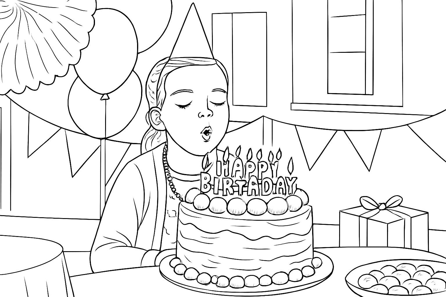 Create a coloring page based on this image, make sure to include all essential details of the image in the coloring page