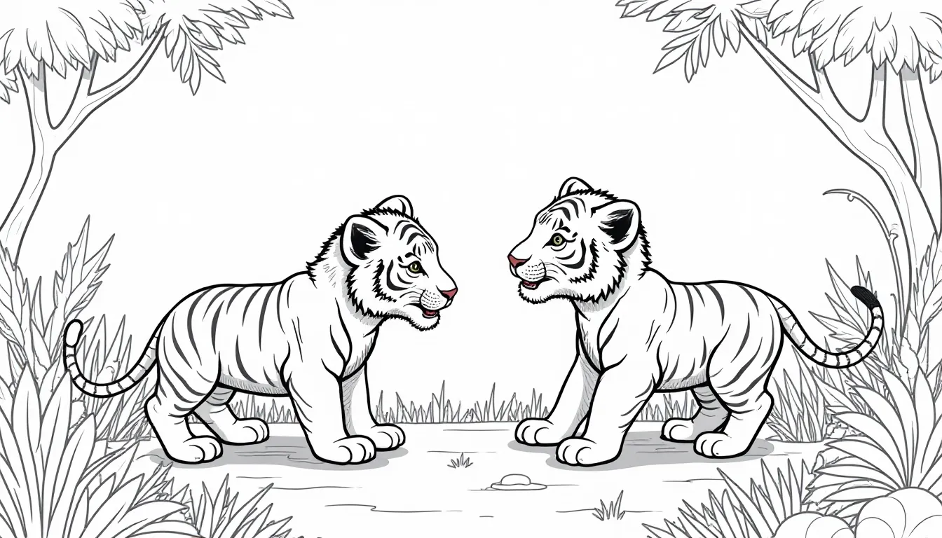 Tiger and Lion Cubs Coloring Page - Jungle Fun✏️🎨