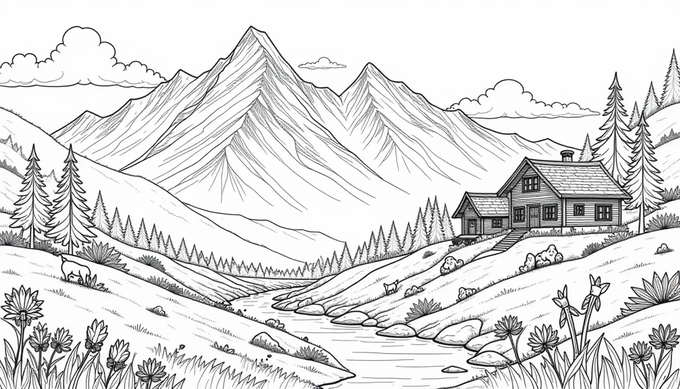 Himalayan Landscape Coloring Page for All Ages✏️🎨